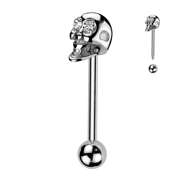 Штанга из хирургической стали 316L в форме черепа со стразами.