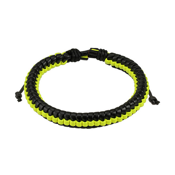 Браслет из туго переплетённых кожаных чёрных и ярко-жёлтых полос.