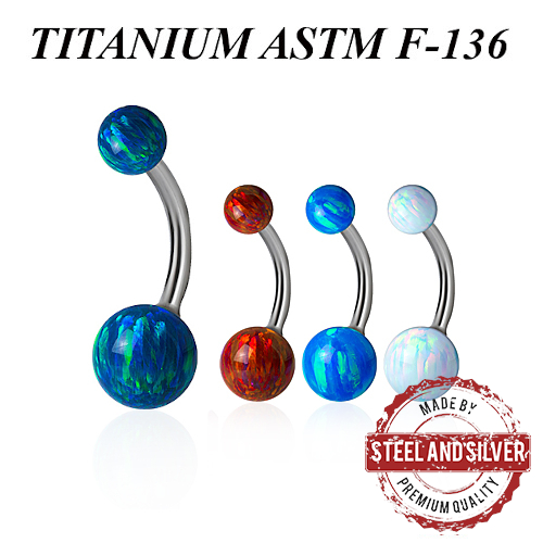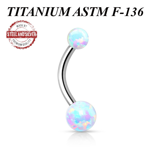 Банан из имплантационного титана 6Al-4V-Eli ASTM F-136 с внутренней резьбой, украшен шариками из лабораторного опала. Диаметр шариков 4 и 6мм.