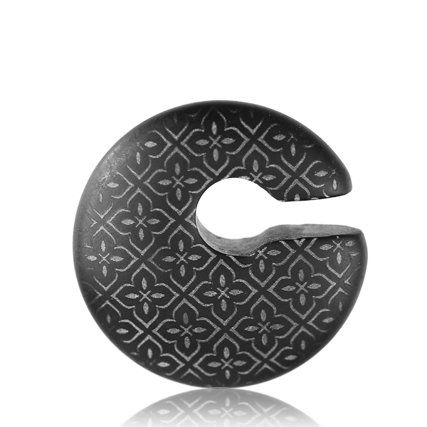Круглые подвесы из чёрного матового боросиликатного стекла с гравировкой.