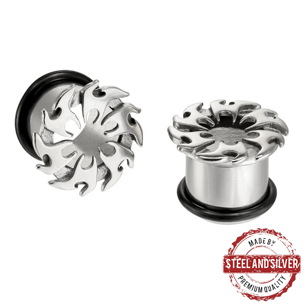Тоннели из хирургической стали 316L в стиле трайбл с резинкой-фиксатором.