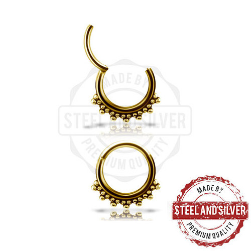 Кликер из хирургической стали 316L с 24х каратным золотым PVD покрытием.