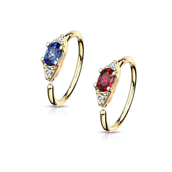 Раздвижное кольцо из хирургической стали 316L с золотым покрытием. Декоративная часть из родированной латуни украшена стразами.