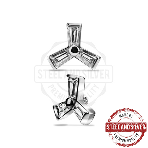 Накрутка из хирургической стали 316L украшена фианитами. Диаметр декоративной части - 5.5мм. Резьба накруток 0,8мм подходят к украшениям толщиной 1 и 1,2мм с внутренней резьбой.