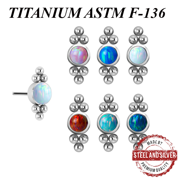 Вставка из имплантационного титана 6Al-4V-Eli ASTM: F-136 для безрезьбовых украшений. Украшена лабораторным опалом.