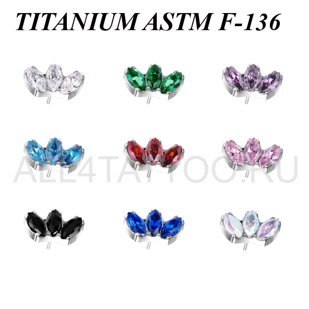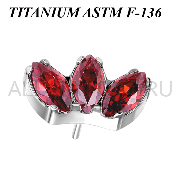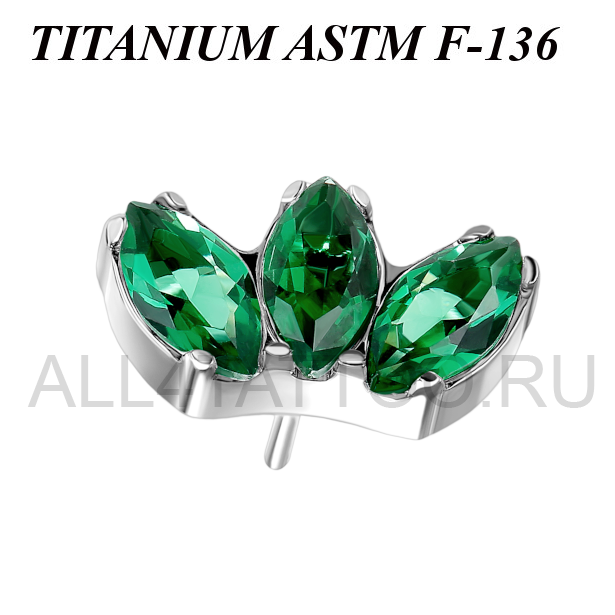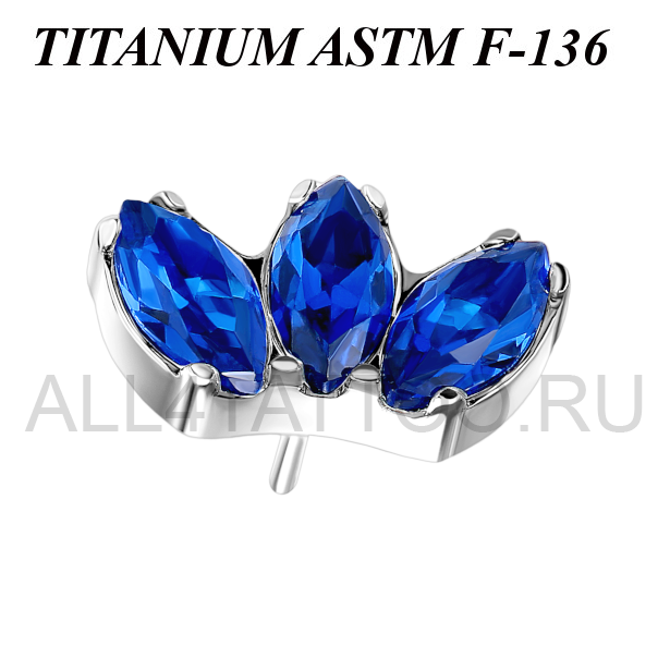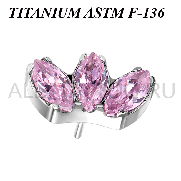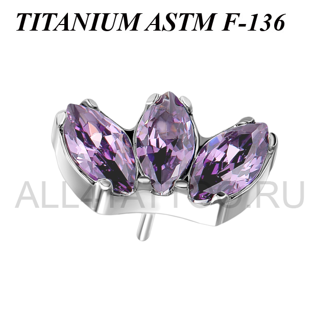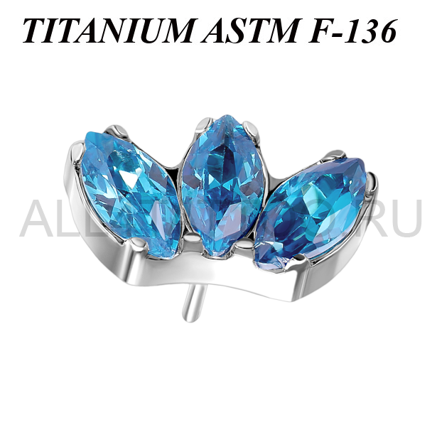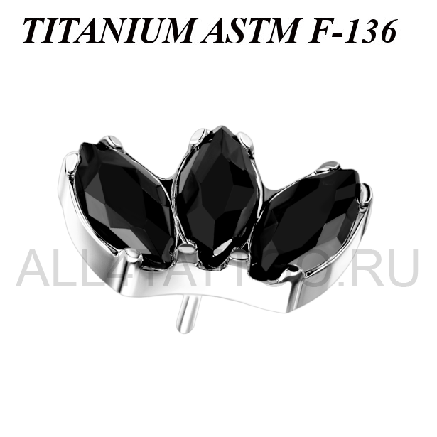 Вставка из имплантационного титана 6Al-4V-Eli ASTM: F-136. Украшена тремя кристаллами огранки "маркиз".