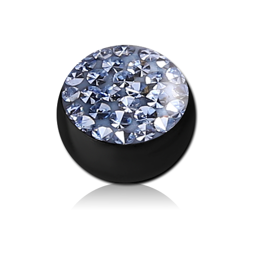 Шарик из хирургической стали 316L с чёрным PVD покрытием украшен стразами под прозрачным акрилом. Подходит для украшений толщиной 1.6мм с внешней резьбой.