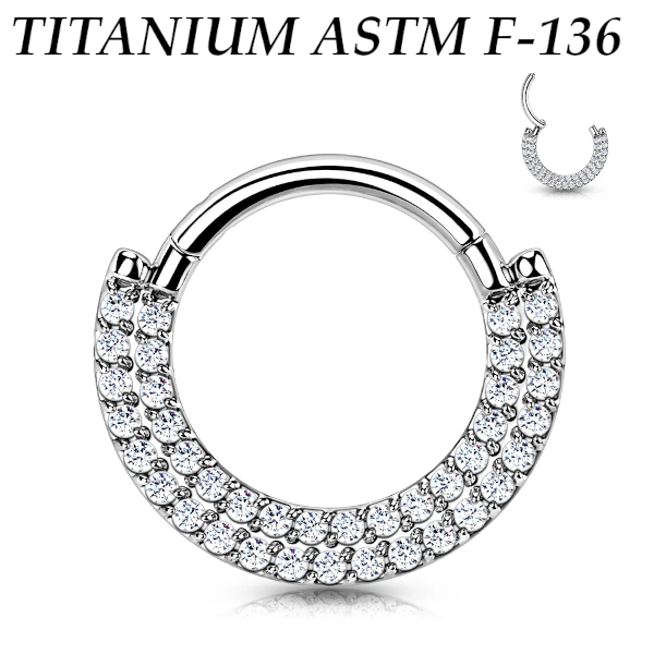 Изящный кликер из имплантационного титана 6Al-4V-Eli ASTM: F-136. Украшен двойным рядом прозрачных кристаллов.