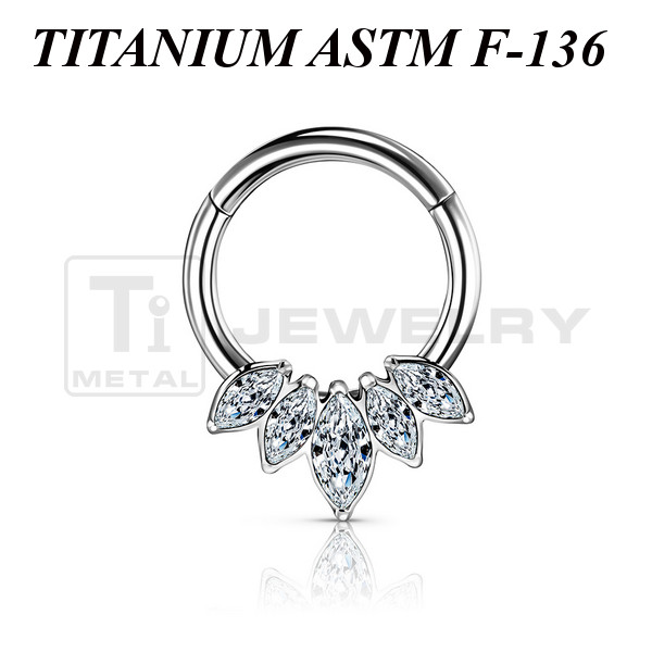 Кликер из имплантационного титана 6Al-4V-Eli ASTM: F-136. Украшен пятью фианитами огранки "маркиз". Размер декоративной части: 9,5х6мм.