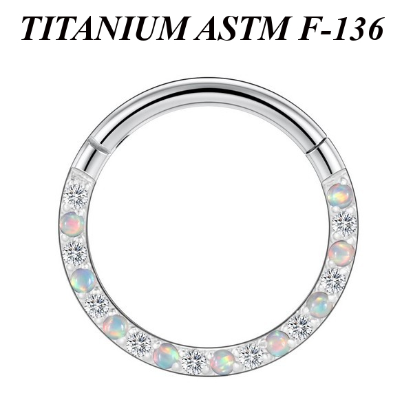 Кликер из имплантационного титана 6Al-4V-Eli ASTM: F-136, украшен опалами и фианитами.