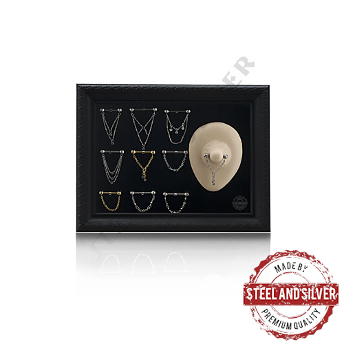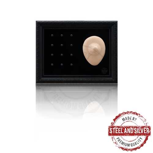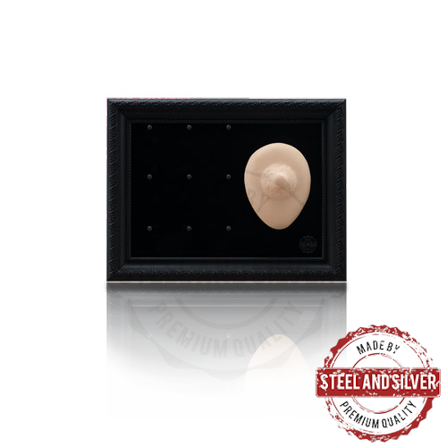 Дисплей для украшений для груди с силиконовым элементом в элегантной чёрной рамке.