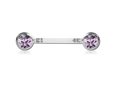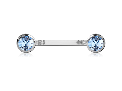Украшение для груди из PTFE с вставкой из хирургической стали, украшенной кристаллами круглой формы. При необходимости длину штанги можно укоротить.