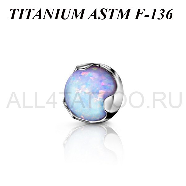 Накрутка из имплантационного титана 6Al-4V-Eli ASTM: F-136. Украшена лабораторным опалом. Подходит для украшений с внутренней резьбой толщиной 1 и 1,2 мм.