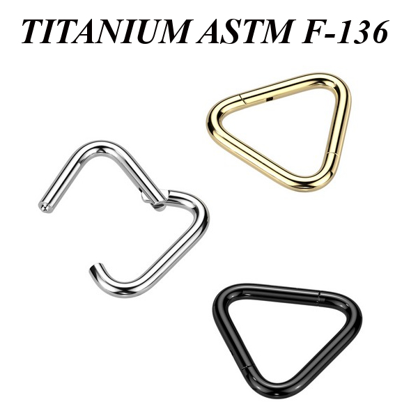 Кликер из имплантационного титана 6Al-4V-Eli ASTM: F-136 в форме треугольника. Представлен в трёх вариантах: классический титановый, с чёрным и золотым PVD покрытием.
