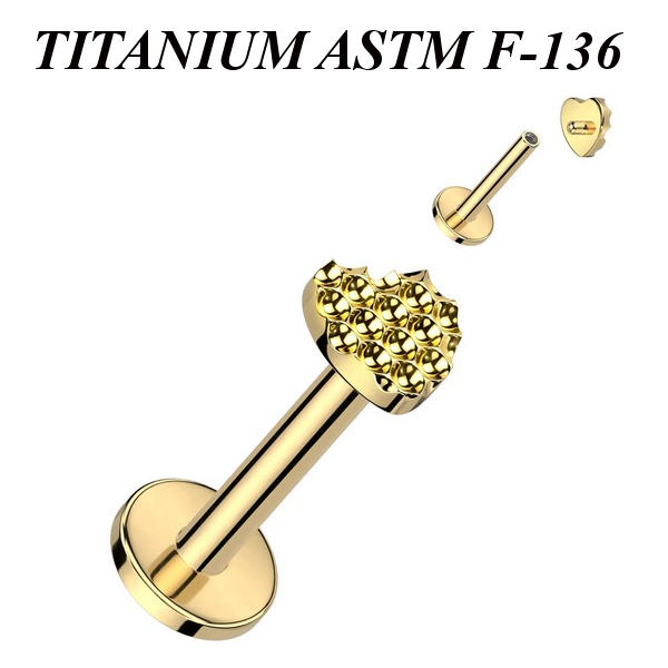 Лабрет с внутренней резьбой из имплантационного титана 6Al-4V-Eli ASTM: F-136. Представлен в двух вариантах: классический титановый и с золотым PVD покрытием