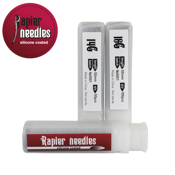Профессиональные иглы для пирсинга с идеальной заточкой. Для лучшего скольжения покрыты силиконом.