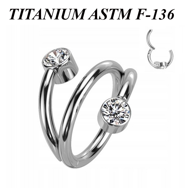 Кликер из имплантационного титана 6Al-4V-Eli ASTM: F-136 с прозрачными фианитами. Диаметр фианита: 2,85мм.