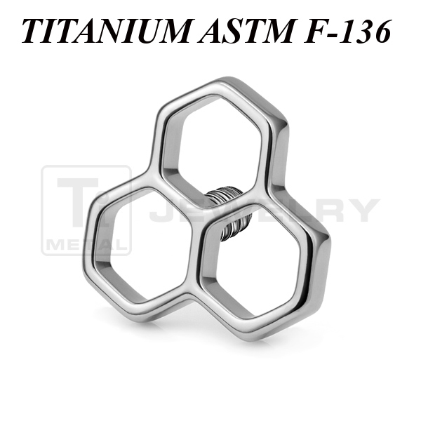 Накрутка из имплантационного титана 6Al-4V-Eli ASTM: F-136 в форме пчелиных сот диаметром 5мм. Представлена в двух вариантах: классическая титановая и с золотым PVD покрытием Подходит для украшений с внутренней резьбой толщиной 1 и 1,2 мм.