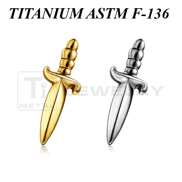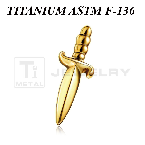 Фигурная накрутка из имплантационного титана 6Al-4V-Eli ASTM: F-136. Представлена в двух вариантах: классическая и с золотым PVD покрытием. Размер накрутки: 3,9х10,2мм. Подходит для украшений с внутренней резьбой толщиной 1 и 1,2 мм.
